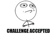 spread all over the internet, then by August 11, 2011, one year later after the original meme was made and has been spread on the internet, the first counterpart by the name of Challenge Considered was made on an unknown website by either the same user, or a different artist as well. Challenge Considered was also uploaded on All The Rage Faces.com by that time in 2011. Since the first counterpart off Challenge Accepted wasn't as popular as the original meme, then two months later, after the Considering counterpart was made, a new counterpart was possibly been created once again by an unnamed artist who either created most of them, or some of the certain Challenge Accepted memes. For one thing, since Challenge Considered wasn't popular as the original meme, a new meme by the name of Challenge Denied began to upload on All the Rage Faces.com by October 30th, 2011. Around that time, he became to be slightly more popular than the original meme around that time, and fans thought of him as an opposite version of Challenge Accepted until Challenge Failed came along one year later. then later, five months later after the Challenge denied was created, a new Challenge Accepted counterpart by the name of Challenge failed came along and was uploaded on AlltheRageFaces.com on May 24th, 2012. Unlike Challenge Denied, he appeared as an ahead version of him and wasn't as popular as him, but even though is the opposite of Challenge Accepted. It is unknown who created most of the Challenge Accepted memes, or who created each one of them, but for one thing, since his drawing style appears to be different than the rest, this could possibly be a different creator or the same one with a different style. By today's standard's, it is unknown if he is still popular or not, but for one thing, he may still be mentioned in current Rage Comics or maybe possibly been with new memes of him as well.